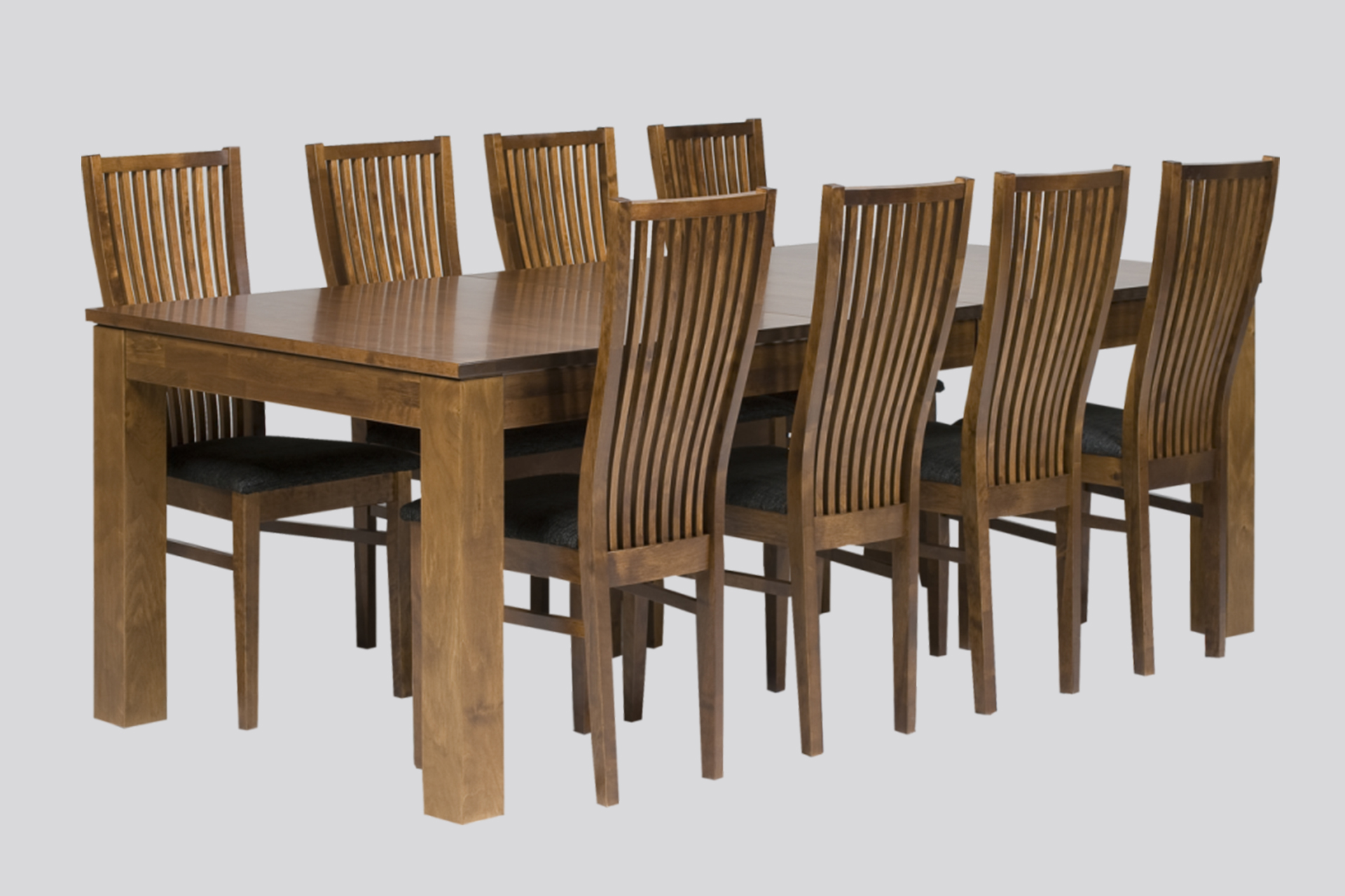 Стол обеденный Aurora выполнен из массива березы и дуба, прямоугольный, с дополнительной вставкой. Углы столешницы – прямые. Отличительной чертой стола являются широкие ножки, что придает ему устойчивость. Благодаря большому выбору размеров и функционала, модель Aurora может дополнить любую гостиную. За столом Aurora с комфортом пройдут и тихие семейные вечера и веселые встречи больших компаний.